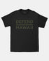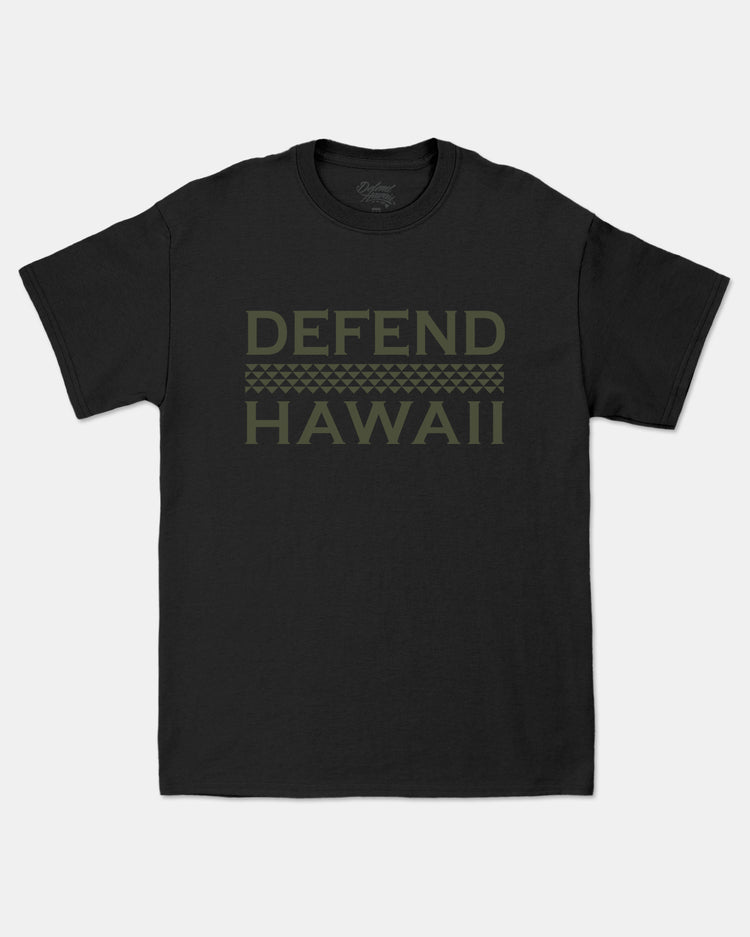Defend Hawai'i - The classic look is back centered with a triangle block. This is, DH Trilocks. Featuring a center chest hit and a flag shield upper back hit. Pick your favorite colorway, this one comes in green on black OR black on athletic heather or military green casual fit t-shirt. Your everyday tee to DEFEND with.