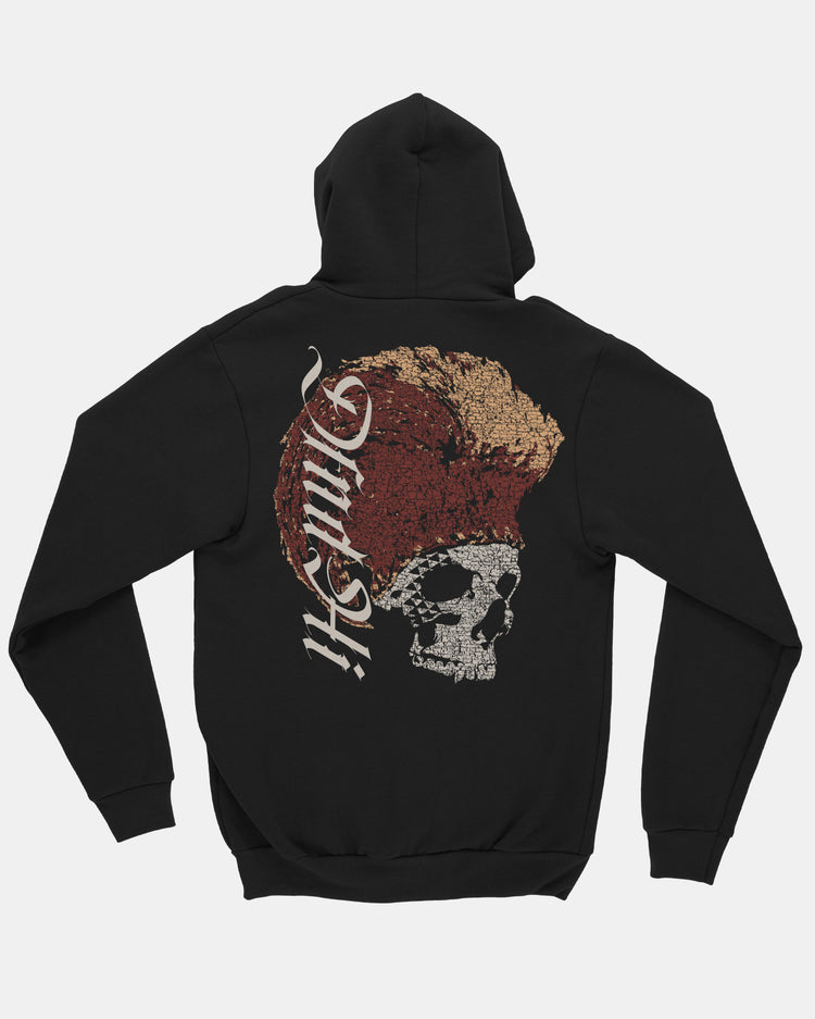 Defend Hawai'i - There's something about the Ali'i Po'o that always gives you a sense of pride. This time as a Skulii Po'o on a clean pocket hit and roaring back hit. Pick your favorite colorway. This one comes in white, red, and gold ink on a black midweight fleece zip hoodie. Your everyday hoodie to DEFEND with.