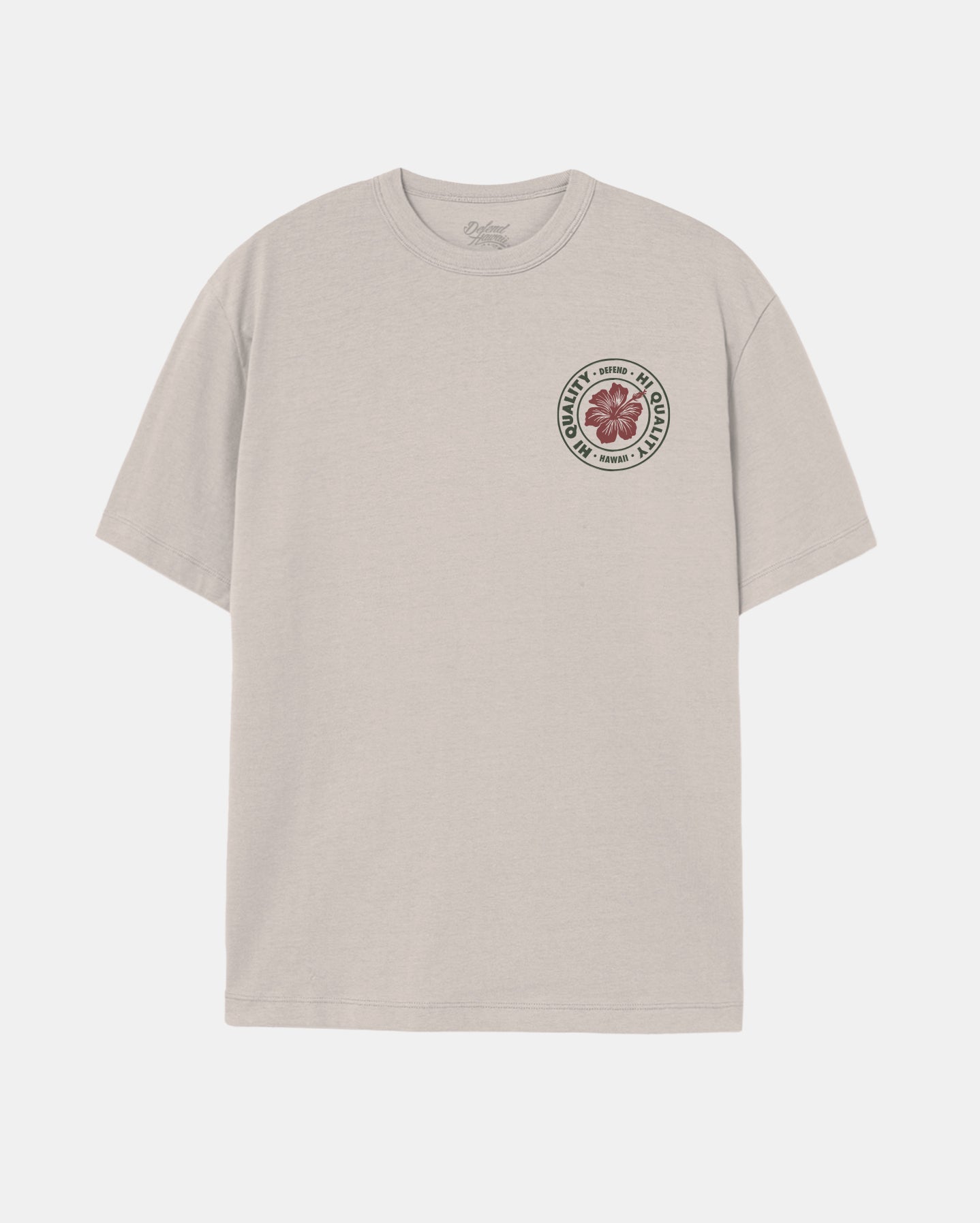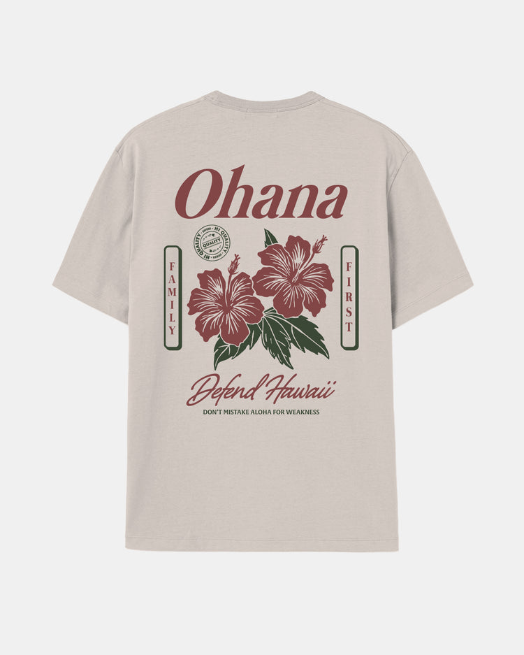 Defend Hawai'i -For the men, women, and keiki. We are an Ohana Brand. Featuring a floral pocket  hit and a full back hit. This one comes in red and green ink on a black or natural casual fit t-shirt. Your everyday tee to DEFEND with.