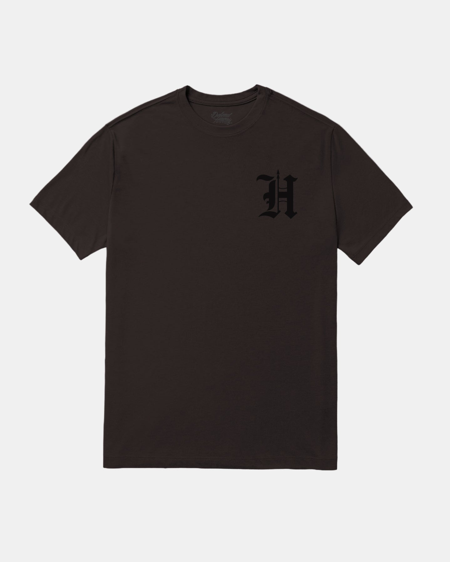 Defend Hawai'i - Introducing the H Spear Rally logo. Featuring a subtle pocket hit and a side back hit. This one comes in black ink on brown casual fit t-shirt. Your everyday tee to DEFEND with.