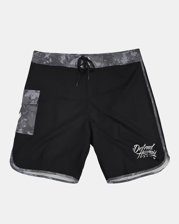 Defend Hawai'i - . We're no stranger to rust, it's part of the lifestyle. Keep it sleek and casual in our newest Rust boardshort. A sleek black short with an rusty trim and pocket.