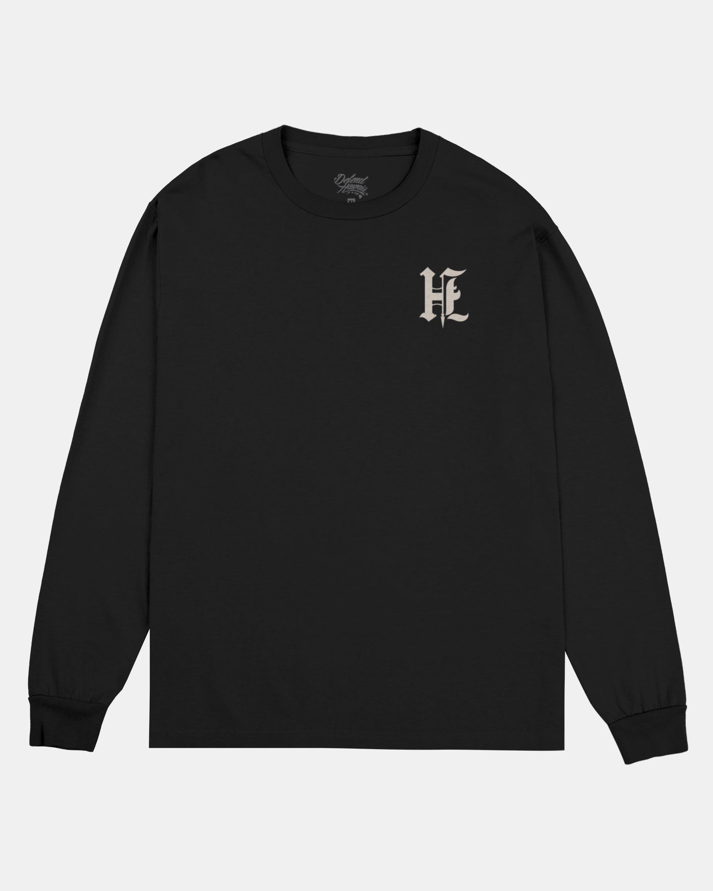 Defend Hawai'i - There's something about the Ali'i Po'o that always gives you a sense of pride. This time as a Skulii Po'o on a clean pocket hit and roaring back hit. Pick your favorite colorway. This one comes in white, red, and gold ink on a black casual fit long sleeve. Your everyday tee to DEFEND with.