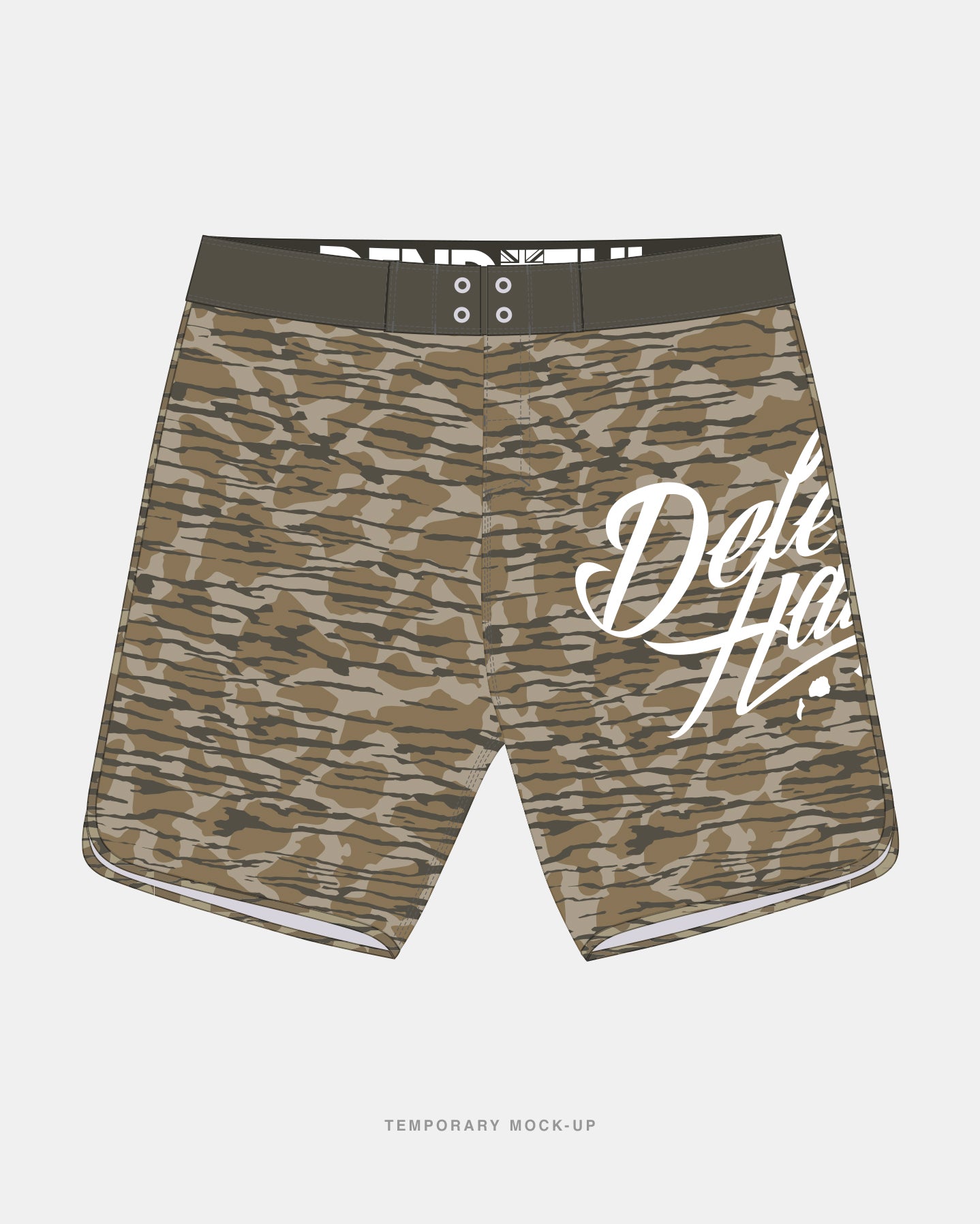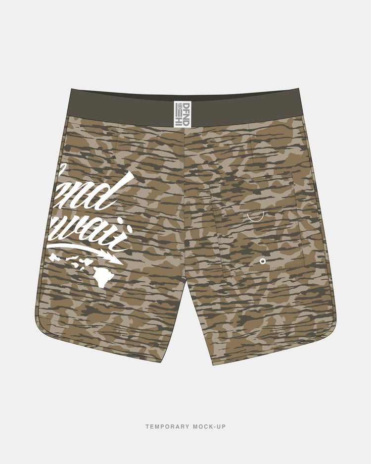 Defend Hawai'i - A classic neutral camo boardshort design for everyday life. Featuring an island style camo pattern and you can't miss the white Wildstyle logo on the side leg. This is Wildstyle Islands Camo Boardshort.