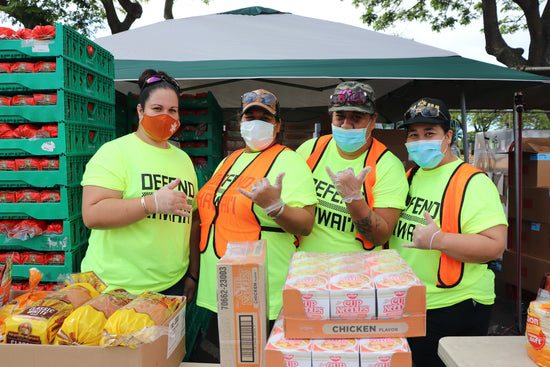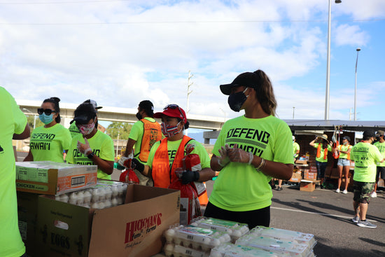 Defend Hawai'i has donated and participated in the Food For Keiki Program, Senior Food Box Program, Commodity Supplemental Food Program (CSFP), and Pandemic food distribution in the height of the COVID-19 crisis. The Defend Hawai'i team has collectively worked more than 300 volunteer shifts for a combined 1,600-plus hours of service.