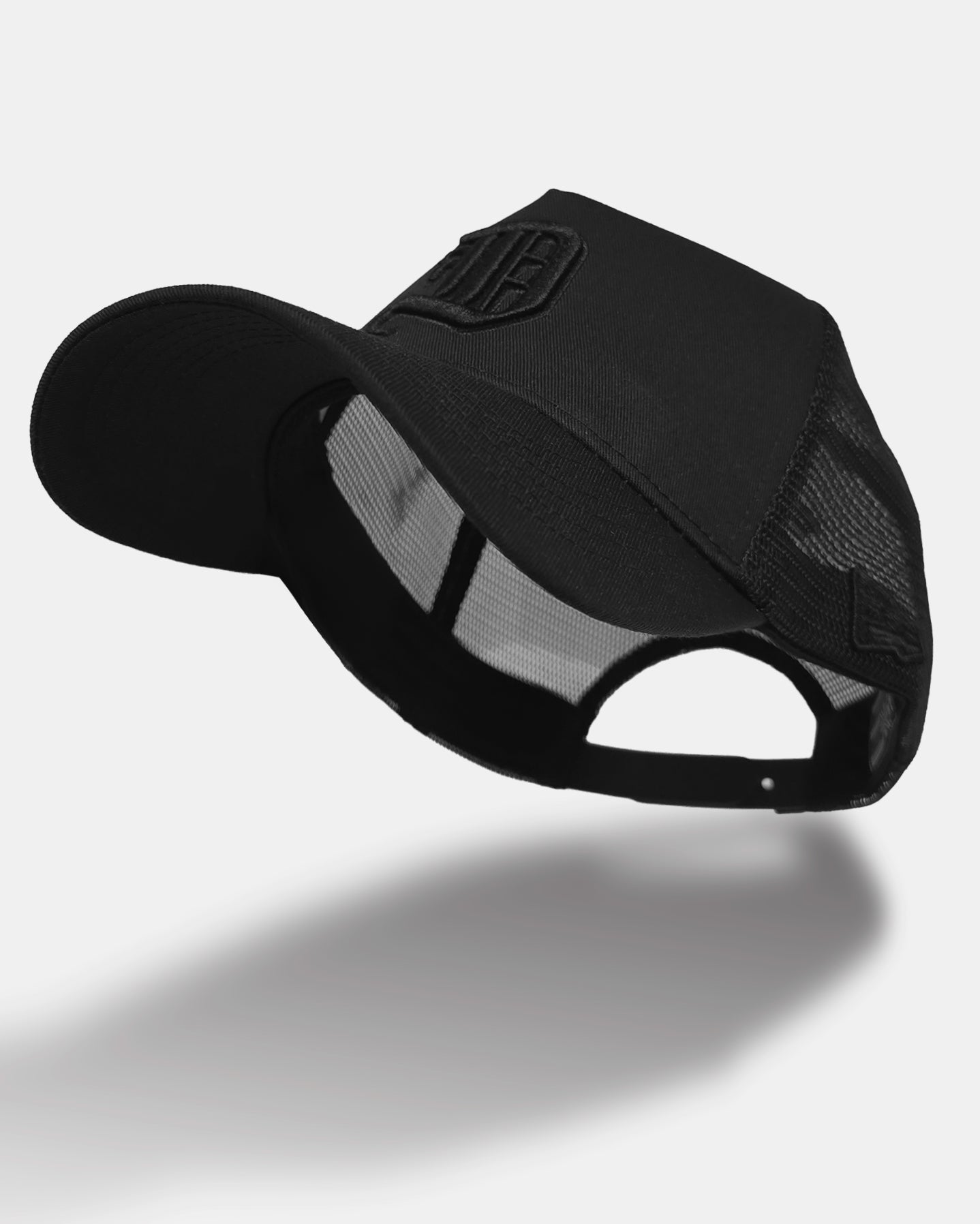 Defend Hawai'i - Our newest headwear drop with our Olde English D All Black a-frame trucker snapback, a bold logo in black on a black base. This one is a cotton casual fit a-frame snapback hat, with a black crown, black eyelets, black brim, and button with a snap closure.