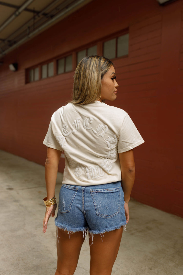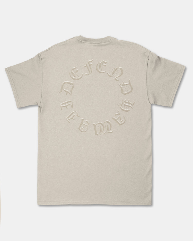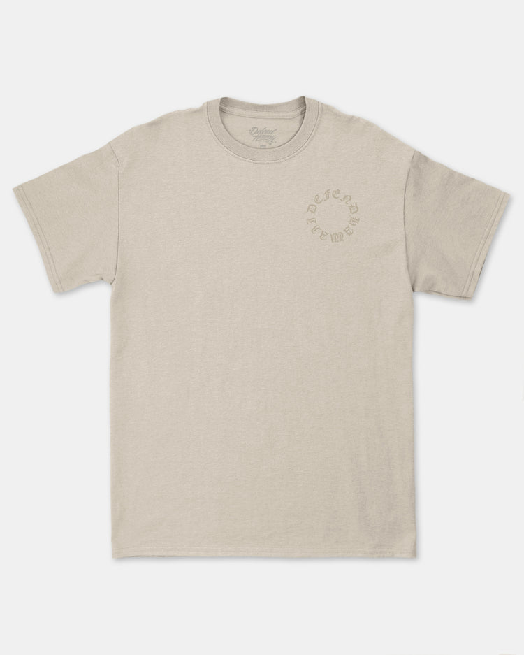 Defend Hawai'i - A little incognito but always on defense. This is Poai Bevel. Featuring a never ending pocket and pack hit in a monochromatic puff print. Pick your favorite color way. This one comes in black on black or natural on natural casual-fit tee.