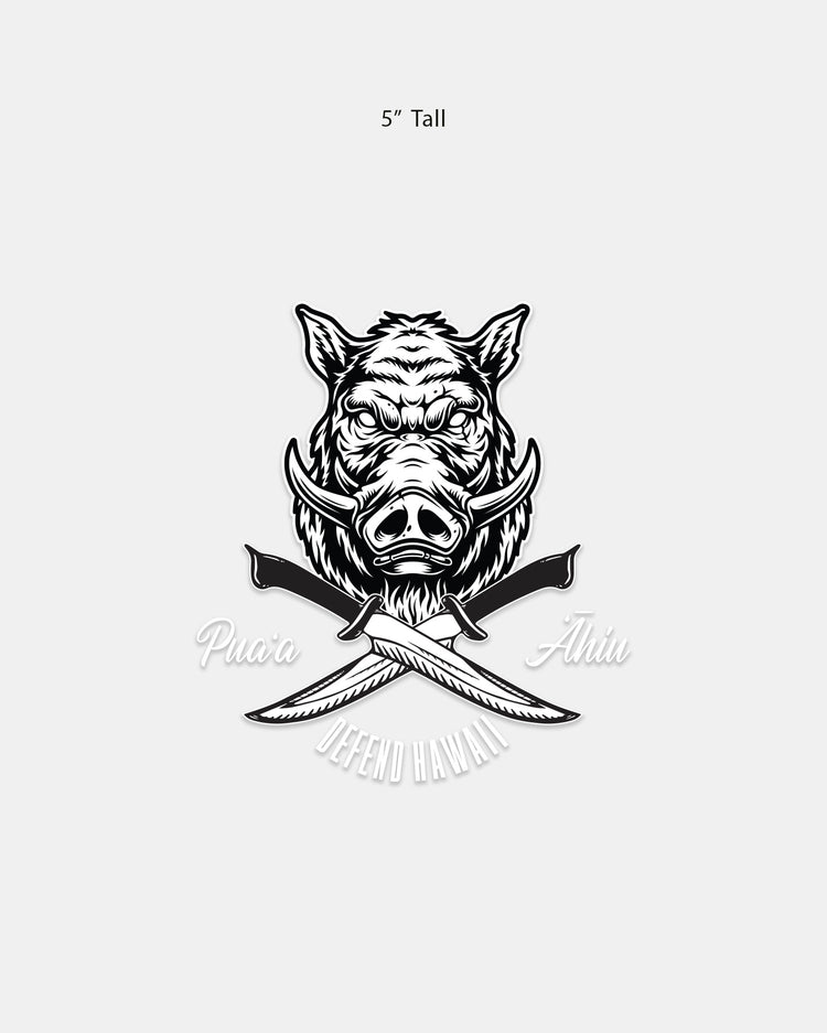 Defend Hawai'i custom die-cut stickers. Collect um, share um, slap um! Cheee! This one is our popular Eradicators design! You'll probably just want this for everything.