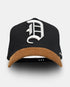 Defend Hawai‘i - Bringing back our staple headwear, featuring the beloved boldly scripted D-Bold design. This time embroidered in white on a black and gold a-frame snapback. A hae Hawai'i (Hawaiian flag) patch embroidered on it's side. This one is a cotton a-frame snapback hat, with a black crown, black eyelets, gold brim, and button with a snap closure.