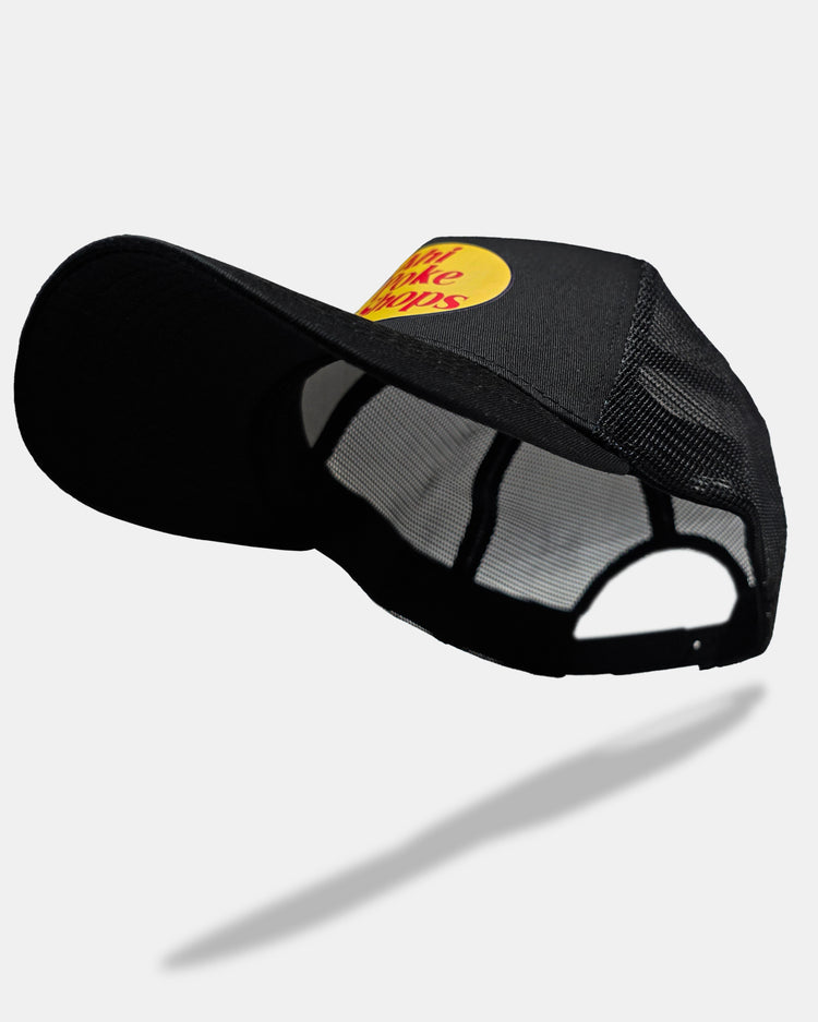 Defend Hawai'i creates THE must have parody design. This Ahi Poke Shops a-frame five-panel snapback. Clearly a local twist of another trendy hat, if you know you know. This one is a full cotton casual fit black meshback trucker hat with a snap closure.